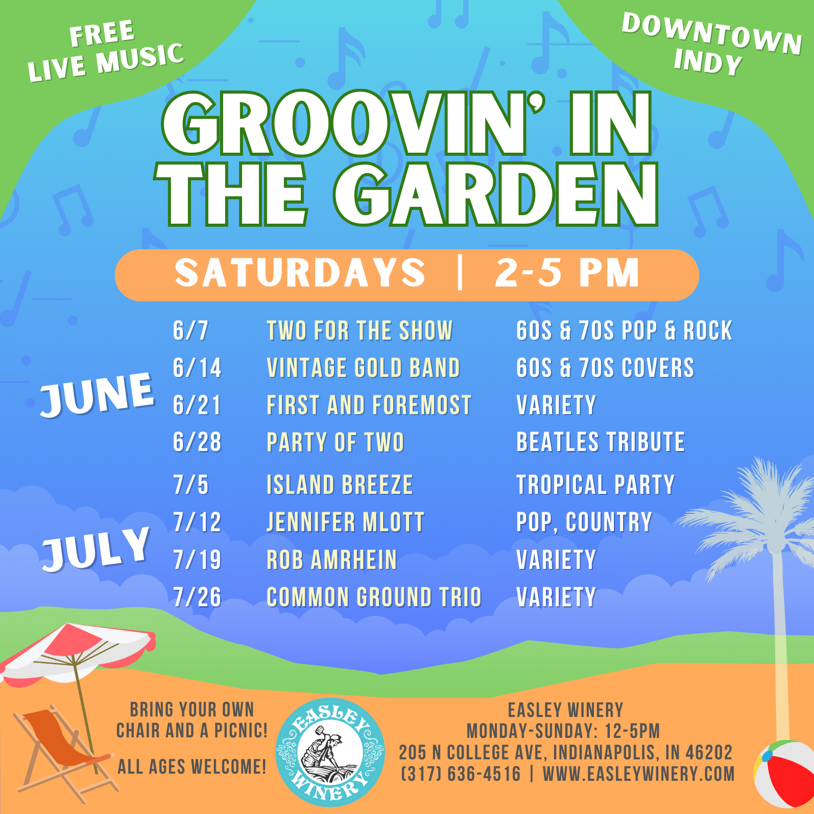 π Location: Wine Garden at Easley Winery - 205 N. College Ave, Indianapolis, IN 46202 (Across from Sun King Brewery)